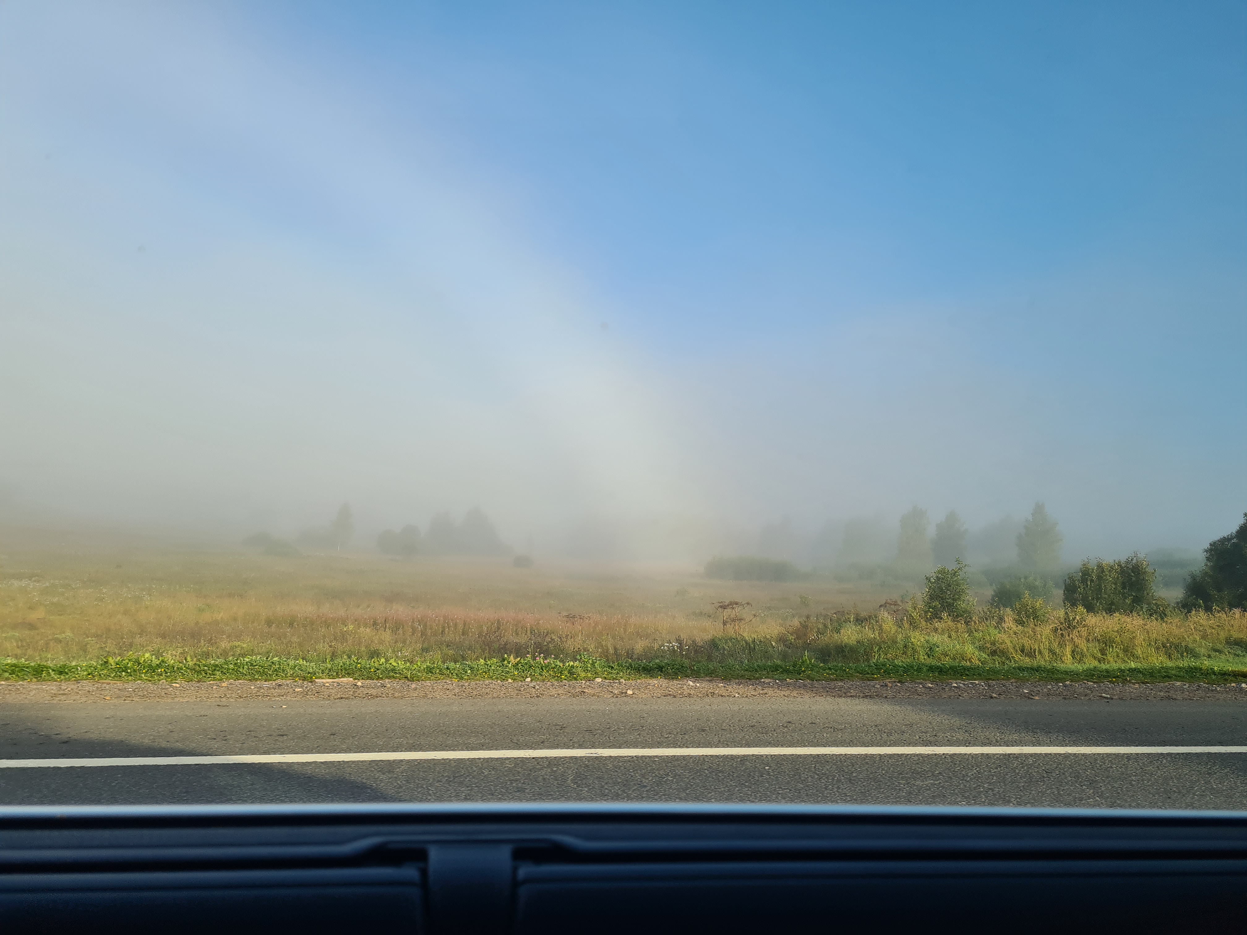 Утренний туман около Ярославского шоссе. Вид из окна машины.